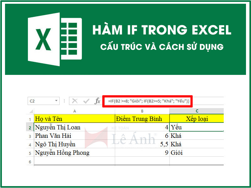 Hàm IF là một hàm phổ biến và thường được dùng trong Excel, hàm này trả về kết quả theo...